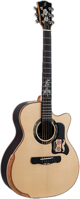 MERIDA EXTREMA, one of the most popular premium acoustic guitar lines in China, with sales of over 35,000 units annually, is setting its sights on global expansion. Although the company has sold guitars around the world to many well-known brands as an OEM supplier, it is working to establish its own trademark with a distinctive line of instruments that combine playability with visually striking inlay work. “Our goal is to become a successful Chinese brand breaking into new territories,” says David Yu, who is directing the global marketing effort. “We respect our competitors but feel we’ve something unique and inspirational to offer.”